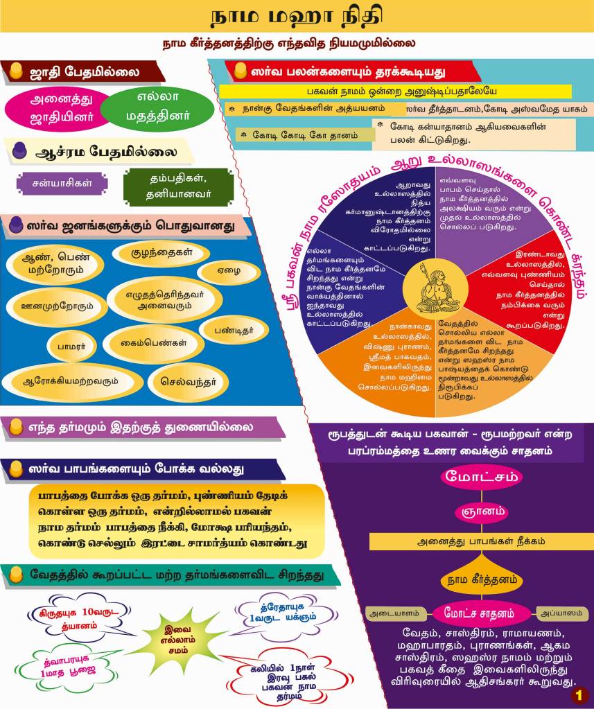 பகவன் நாம போதேந்திர சரஸ்வதி ஸ்வாமிகள் அருளிய “பகவன் நாம ரஸோதயம்” என்னும் நாம சித்தாந்த கிரந்தத்திலிருந்து கோர்க்கப்பட்ட நாம சித்தாந்த விஷய முத்துக்கள், நாம மஹா நிதிக்குவியலாக தங்களின் அனுபவத்திற்கு. ராம! ராம! ராம!